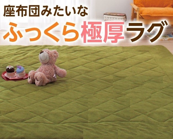 座布団みたいな極厚ボリュームラグ。丸ごと洗えるはっ水カバー付