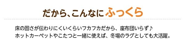 ■ 品質/ラグ:表面ポリエステル100%、中わたポリエステル100%(固わた入り)、裏面ポリエステル80%、綿20%、カバー:表面ポリエステル100%、中わたポリエステル100%、裏面ポリエステル100%