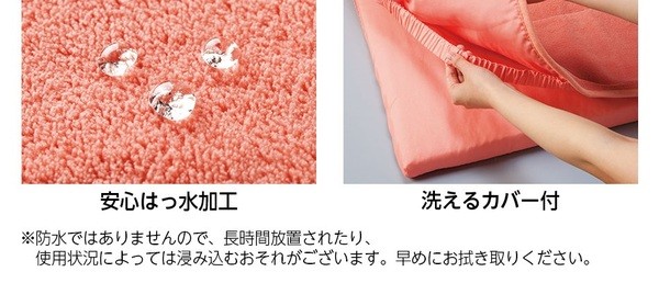 ※ 防水ではありませんので、長時間放置されたり、使用状況によっては浸み込むおそれがございます。早めにお拭き取り下さい。