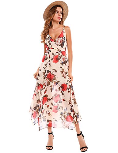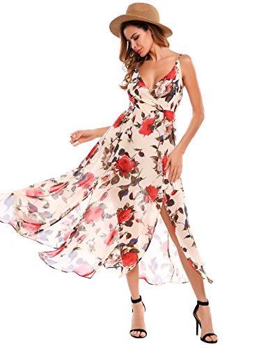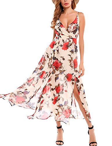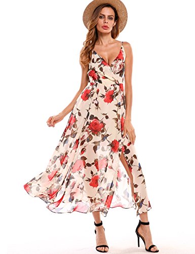 Skirt type: Sexy V neck high Waist type.Sleeveless, high Waist, Slit Side, Floor Length, Floral Print
