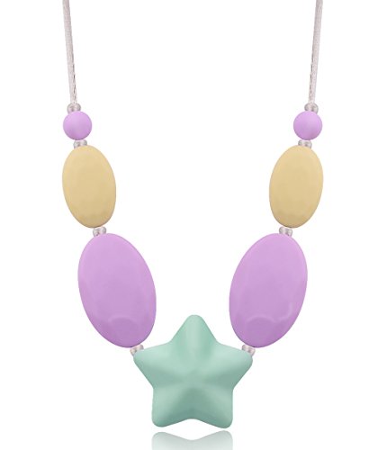 Desinger Charm Teething Beads Strand Necklace For Women,Baby Teether Neckless,100% Silicone BPA Free,Stylish & Natural & Safe,Handmade...