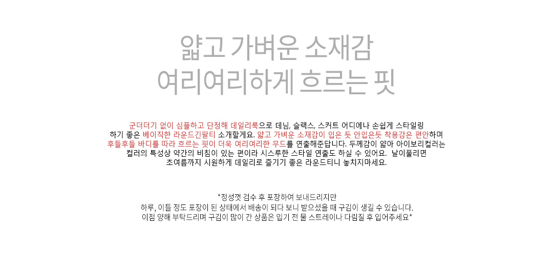 .같은 사이즈라도 체형에 따라 핏감이 조금씩 다를 수 있습니다.