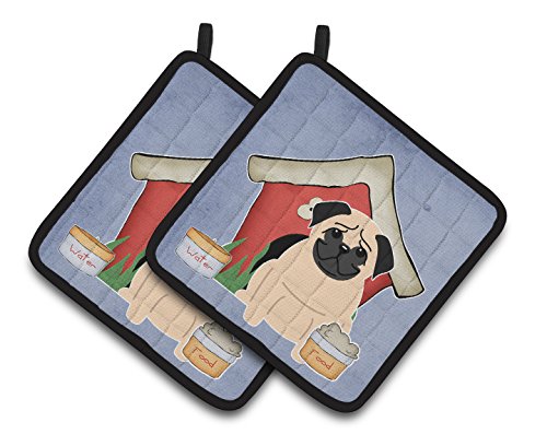 Caroline's Treasures Dog House Collection Pug Fawn Pair of Pot Holders BB2762PTHD, 7.5HX7.5W, Multicolor