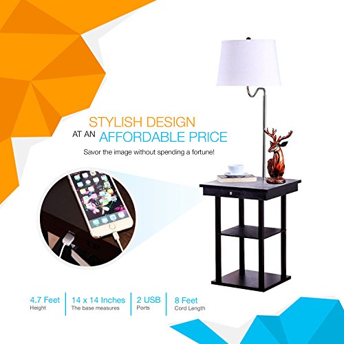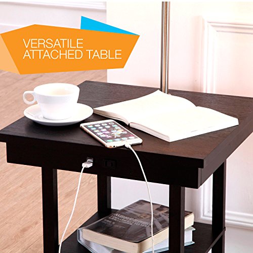 - ALL IN ONE LAMP WITH BUILT IN SIDE TABLE AND SHELF: Gone are the days of worrying about knocking the lamp off of the side table because of this beautifully engineered all in one lamp and side table. Style and function combine to brighten up your room and provide a storage or display area for vases, books, dvds, Blu-Rays, or other small objects. The fixture arm can also be swiveled to bring the light closer to wherever you need it so that you can achieve the perfect lighting.