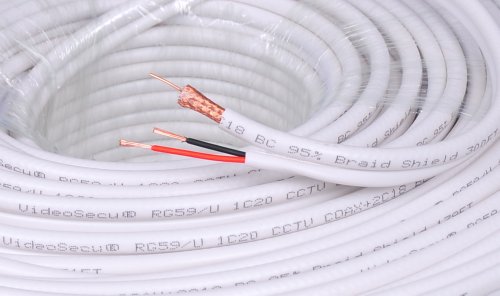 -. Binding : Electronics -. Brand : VideoSecu -. Color : White -. EAN : 0811535011146 -. Feature : RG-59/U Type coax plus one pair 18 AWG stranded power cable. Siamese type configuration with separation web / Video Cable: 20AWG Solid Bare Copper Center Conductor, 95% Braid Shield / Power Cable: 2 x 18AWG (7 Strand) Bare Copper Conductor 300 feet in white color / Professional Siamese Coax Cable for CCTV Surveillance Camera and Security System / White PVC Jacket. Accepting Twist-on BNC Connectors or any other Standard RG-59 Coax Connectors and Power Pigtails -. Label : VideoSecu -. Manufacturer : VideoSecu -. Model : CBS300W -. MPN : CBS300W -. PackageQuantity : 1 -. PartNumber : CBS300W -. ProductGroup : Photography -. ProductTypeName : SURVEILANCE_SYSTEMS -. Publisher : VideoSecu -. SKU : NAS-B001JKI7H8 -. Studio : VideoSecu -. Title : VideoSecu RG59 /U Siamese CCTV Combo Coaxial Cable 300ft ,20AWG 18/2 18AWG Video Power Security Camera Cable Home Surveillance DVR System Extension Wire Cord AA1 -. UPC : 811535011146