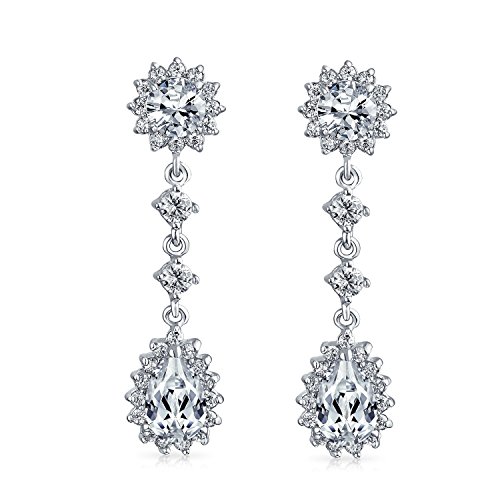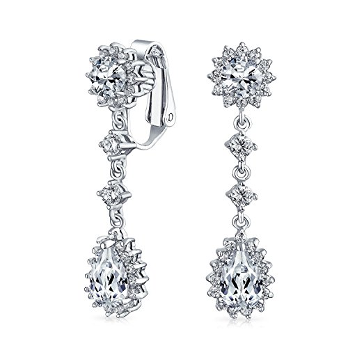To epitomize the ice princess, bridal look choose these staggering lovely, brass chandelier clip on earrings for non pierced ears. Showcasing a beguiling, teardrop cz nestled enhanced by a cz halo and round cz stone at top.