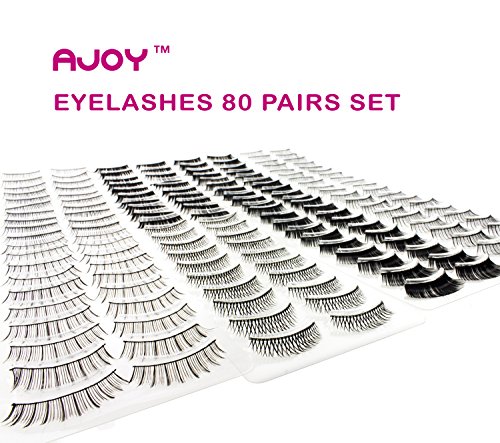 AJOY 80 Pairs 8 Styles Multipack Fake Eyelashes Set, Natural False Eye Lashes Pack Strip Bulk