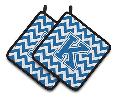 Caroline's Treasures Letter K Chevron Blue & White Pair of Pot Holders CJ1056-KPTHD, 7.5HX7.5W, Multicolor