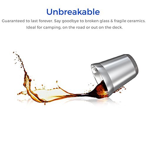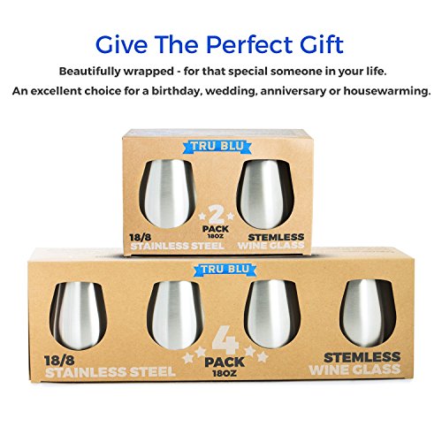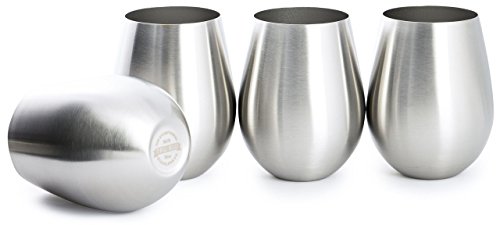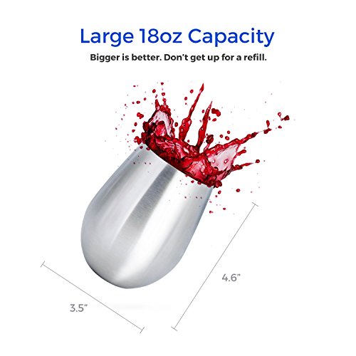 Stainless Steel Wine Glasses - Set of 4 Large & Elegant Stemless Goblets (18 oz) - Unbreakable, Shatterproof Metal Drinking Tumblers