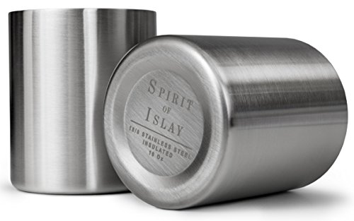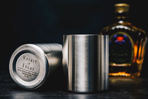 Whiskey Glass Set of 2 Stainless Steel Scotch Glasses, 10oz, Unique Gift for Men. Unbreakable, No Metal Taste, Thermally Insulated