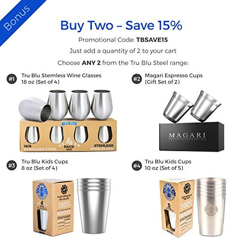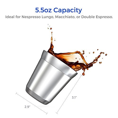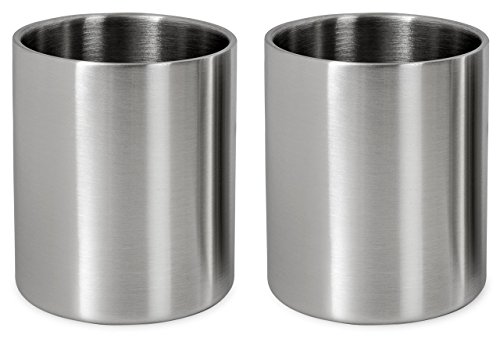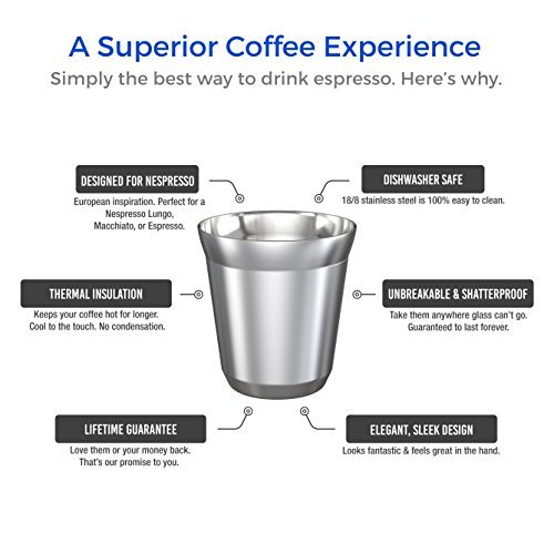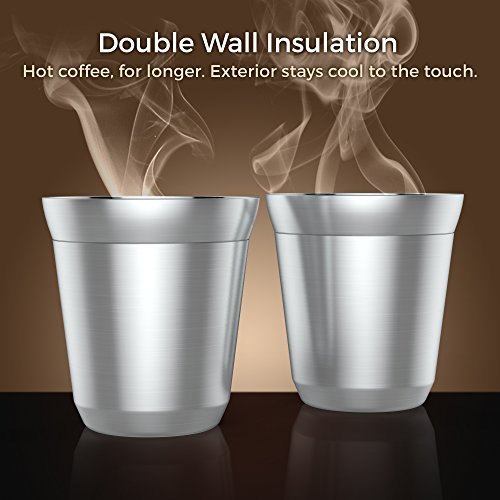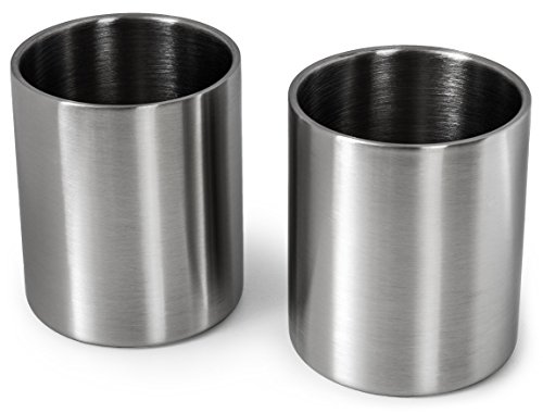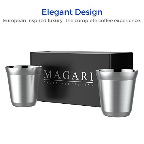 Stainless Steel Espresso Cups - Set of 2 Double Walled 5.5 Ounce Coffee Glasses, Elegant Gift for Connoisseurs - Unbreakable, No Metal Taste Demitasses Last a Lifetime - Thermally Insulated