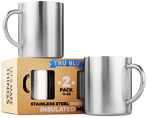 Coffee Mug – 14oz Insulated Set of 2, Shatterproof, Healthy & BPA Free Stainless Steel, Dishwasher Safe