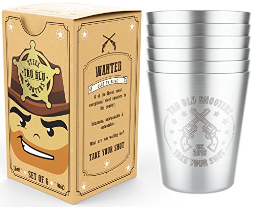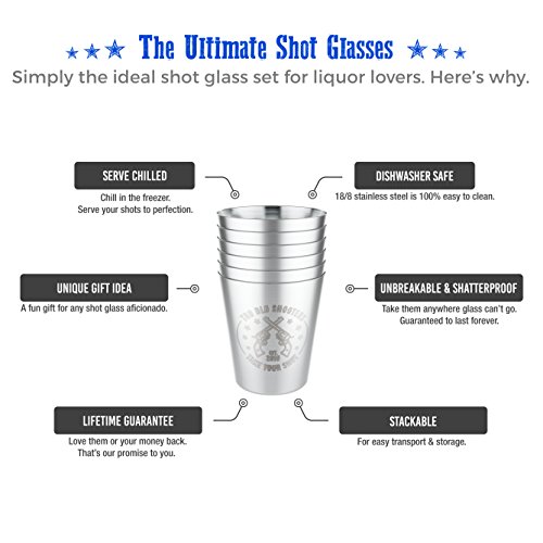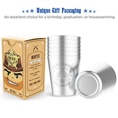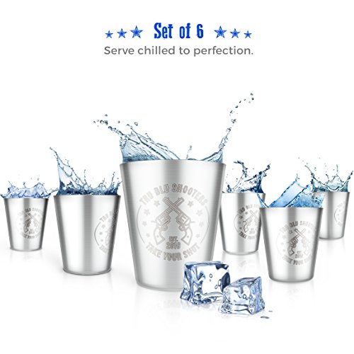 Stainless Steel Shot Glasses (Set of 6) - 2 oz Unbreakable Metal Shooters for Whiskey, Tequila, Liquor - Great Barware Gift Idea by Tru Blu Steel
