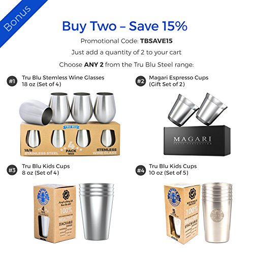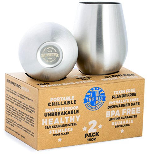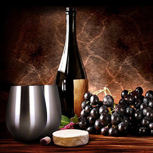 Stainless Steel Wine Glasses - Set of 2 Large & Elegant Stemless Goblets (18 oz) - Unbreakable, Shatterproof Metal Drinking Tumblers