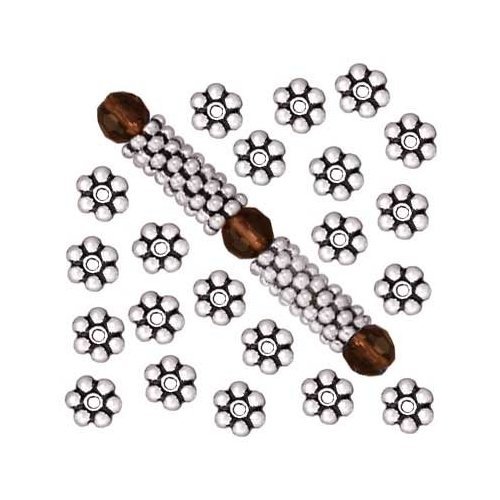 Beading Station 200-Piece Daisy Spacer Metal Beads, 4mm, Tibetan Silver