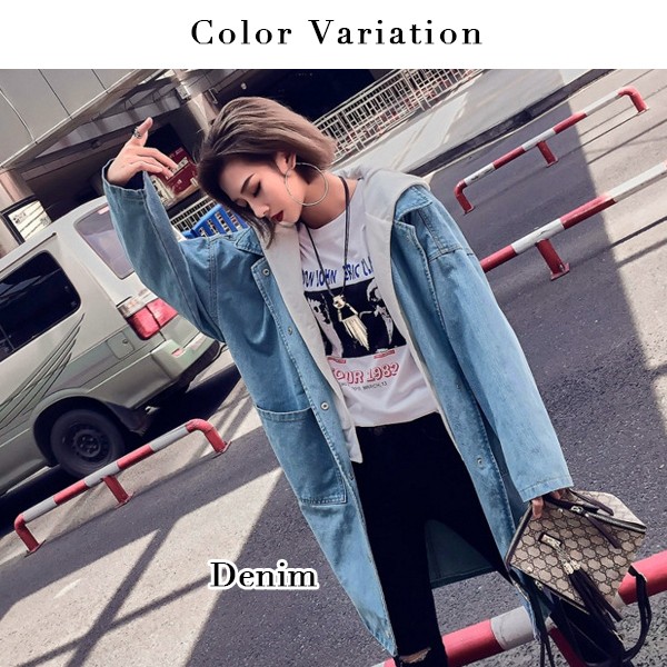 | 商品説明 | 重ね着風 フード付きデニム ロングジャケット コート♪ カジュアルなゆるシルエットのデニムコートです。 パーカーを重ね着したようなおしゃれなデザイン♪ |