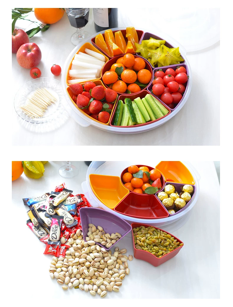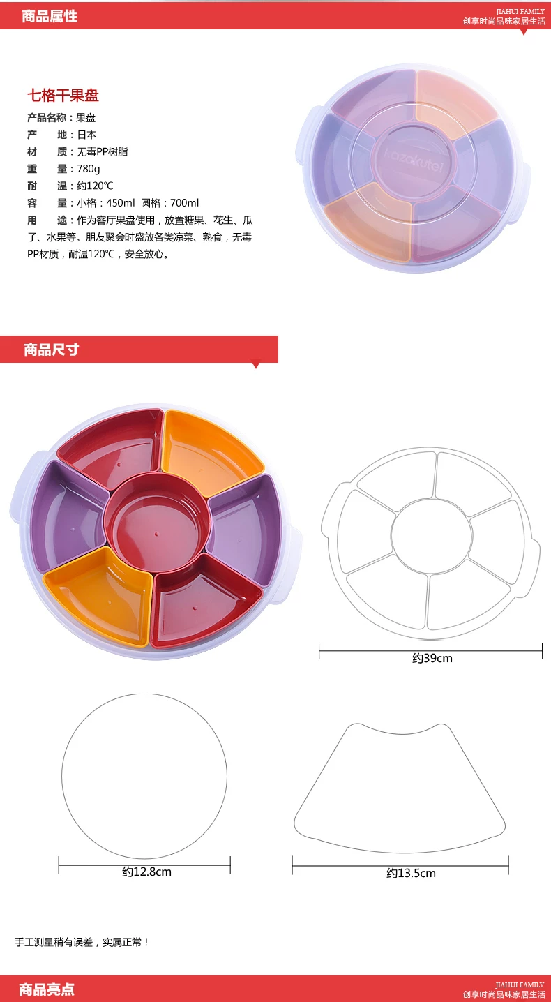 Japan's imports of dried fruit tray plastic fruit plate fashion creative European sub-grid covered candy box of dried fruit seeds