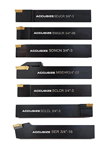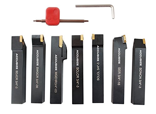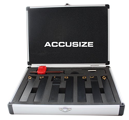 AccusizeTools - 7 Pieces/Set 3/4" Indexable Carbide Turning Tool Set in Fitted Box, #2387-2006