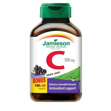 -. Binding : Health and Beauty -. Brand : Jamieson Laboratories -. IsAdultProduct : 0 -. Label : Jamieson Laboratories -. LegalDisclaimer : This statement has not been evaluated by the FDA. This product is not intended to diagnose, treat, cure, or prevent any disease. -. Manufacturer : Jamieson Laboratories -. ProductGroup : Health and Beauty -. ProductTypeName : HEALTH_PERSONAL_CARE -. Publisher : Jamieson Laboratories -. Studio : Jamieson Laboratories -. Title : Vitamin C Chew 500mg Grape Bonus-100+20 tabs Brand: Jamieson Laboratories