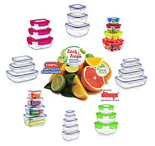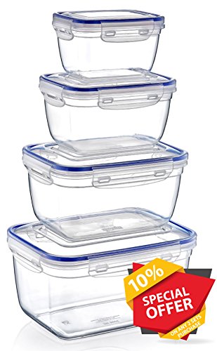 Lock&Fresh BPA Free Plastic Sealed food Storage Container Set 4 pcs 19 oz. - 101 oz.