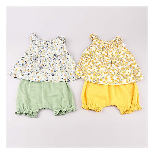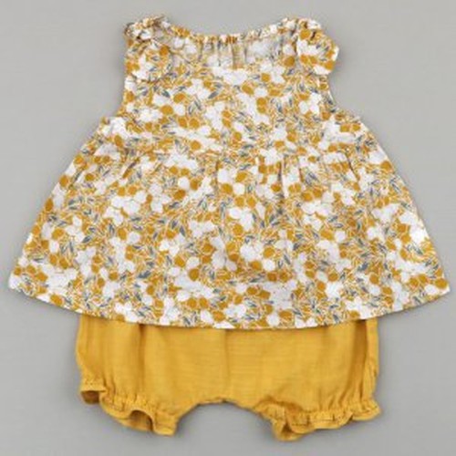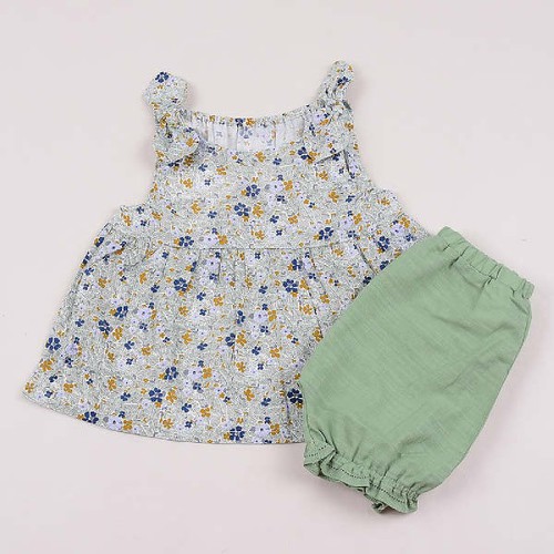 상의 프린트가 잔잔한 무늬로 아기자기한 귀여움을 선사합니다.