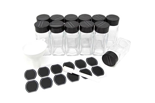 Glass clear square spice jars with Black sifter lid 4oz in case of 12 by Nicole Jean (Black)