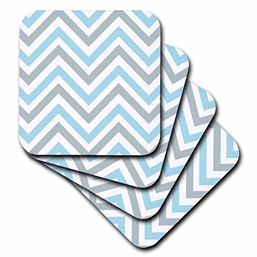 3dRose Light Blue & Grey Chevron Zig Zag Pattern - Modern pastel Zigzags - Soft Coasters, Set of 4 (cst_179788_1)