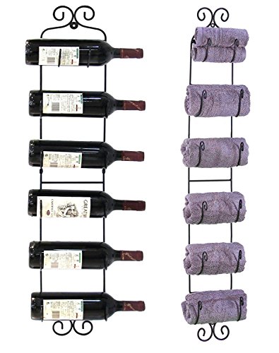 ESYLIFE Wall Mounted Wine Towel Rack, 6 Bottles, Black