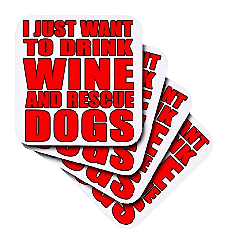 3dRose I Just Want To Drink Wine and Rescue Dogs Red - Soft Coasters, Set of 4 (cst_222866_1)
