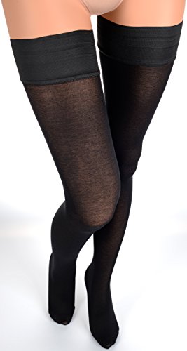 -. Feature : 80 Denier Cotton Stay Up Thigh Highs / Shaped Finish, Made in Italy / 55% Cotton 35% Nylon 10% Spandex / Sheer, Reinforced toe. / Hand wash, No bleach, No iron, No tumble dry