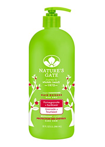 -. Binding : Health and Beauty -. Brand : Nature's Gate -. EAN : 0078347752098 -. Feature : Rich in vitamins and antioxidants, pomegranate helps protect against damaging free radicals while nourishing and repairing. / Sunflower Seed Extract is rich in polyphenols, and proven to protect hair color from UV damage and environmental pollutants while adding shine to hair. Also helps prevent hair color from fading. / Marshmallow is known to help soften, smooth and hydrate hair. -. IsAdultProduct : 0 -. IsAutographed : 0 -. IsMemorabilia : 0 -. Label : The Regatta Group DBA Beauty Depot -. Manufacturer : The Regatta Group DBA Beauty Depot -. Model : 43000011 -. MPN : - -. NumberOfItems : 1 -. PackageQuantity : 1 -. PartNumber : - -. ProductGroup : Beauty -. ProductTypeName : BEAUTY -. Publisher : The Regatta Group DBA Beauty Depot -. ReleaseDate : 2016-09-26 -. Size : 32 oz -. Studio : The Regatta Group DBA Beauty Depot -. Title : Nature's Gate Pomegranate + Sunflower Hair Defense Conditioner, 32 Fluid Ounce -. UPC : 078347752098