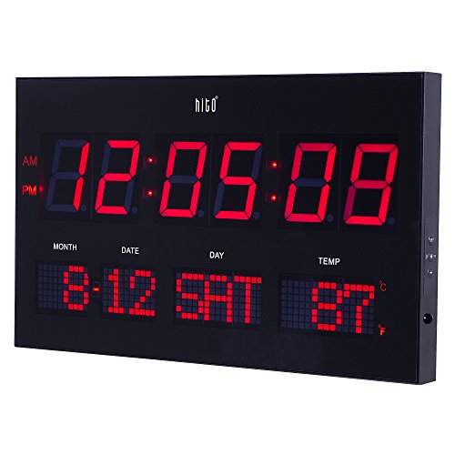 -. Title : hito Extra Large Oversized LED Wall Clock w/ Date, Week, Indoor Temperature, Brightness Adjustable, Memory Function, Adapter Included (Red)