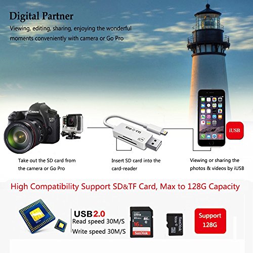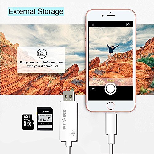 🍎 EXTERNAL STORAGE FOR IPHONE - Simply taking more photos and videos. No worries about your iphone/ipad/ filled up with pictures and videos any more. You can shoot picture and video via the app "iUSB Pro" from App Store and save them to your SD TF card simultaneously. (The SD/TF card no included)