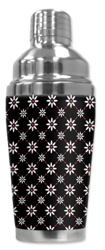 MUGZIE 856-SHA "WHITE DAISIES" COCKTAIL SHAKER WITH INSULATED WETSUIT COVER, 16 OZ, BLACK