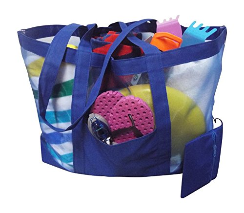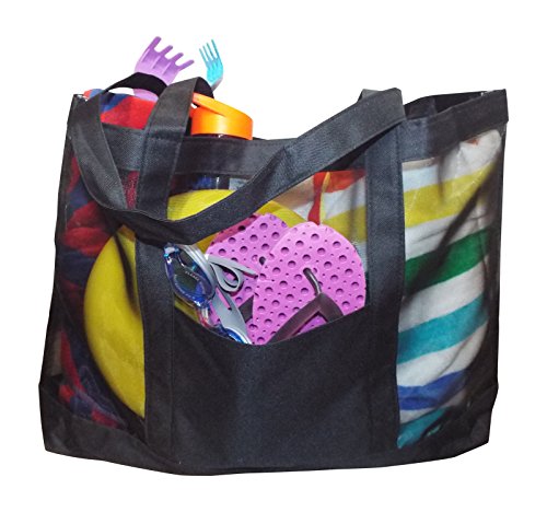 -. Binding : Misc. -. Brand : EZ Travel -. Feature : Extra Large See-Through Go Everywhere Beach Tote Bag / Quality Mesh allows you to find what you need quickly! Toys, Towels, Sunglasses, Goggles. Snacks Etc. / Attached Zippered Pocket holds keys, money, and valuables / Great for summer, beach, resorts, vacations, shopping, parks and more! / Size: 16.75"H x 24"W x 4"D -. IsAutographed : 0 -. IsMemorabilia : 0 -. Label : EZ Travel -. Manufacturer : EZ Travel -. ProductGroup : Sports -. ProductTypeName : SPORTING_GOODS -. Publisher : EZ Travel -. Studio : EZ Travel -. Title : Carryall Huge See-Thru Mesh Beach Tote Bag