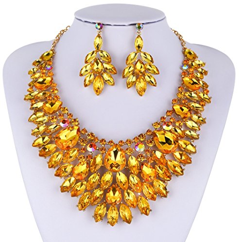 Simply stunning! You are looking at beautiful twinkling necklace set. Sparkling first class Golden/Yellow and AB Golden Genuine Austrian Rhinestones are set on beautiful shiny Gold Tone metal. This set shines a lot! It is perfect for any special occasions. Thanks for looking!Feature