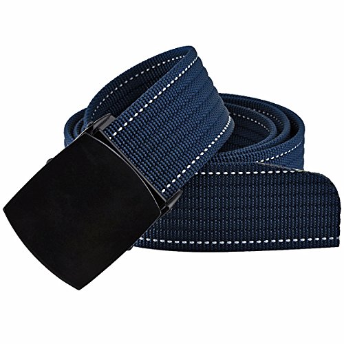 -. Feature : Material:100% Nylon,Zinc alloy metal automatic buckle,sturdy and stay tight. Quick Dry material,stain resistant,wear resisting. / Adult Size--Suits for waist below 44 inches. Total Length 48"(From end to end,including the buckle),Width:1.5",Thickness:0.078". Buckle size:2.25"(L) x 1.75"(W). Due to manual measurement,up to a 1/4"-1" variation in length is considered to be normal. / Easy Use--Just slides one ends through the buckle and adjust the desired size to your need,then press down the buckle to fasten the belt.Lift the buckle up and grasp the webbing to release. / Buckle closure.Fully adjustable,No holes in belt.You can precisely adjust your belt to the perfect fit.If the Strap is too long for you, you can cut & heat-seal the strap with a lighter,just have to make sure it is a clean cut or any frayed ends will make it harder to slide through.Or you can cut down the end of the belt so it does not stick out too far. / Military nylon webbing duty tactical belt,durable,reinforced stitching,sturdy and wide enough to keep from curling under the weight of my equipment of smartphone and measuring tape daily.Suitable for unisex,both adult men and women.Good belt for casual wear,also perfect for Sports Activity, Military Wear, Police, Emergency, Firefighter, and More!