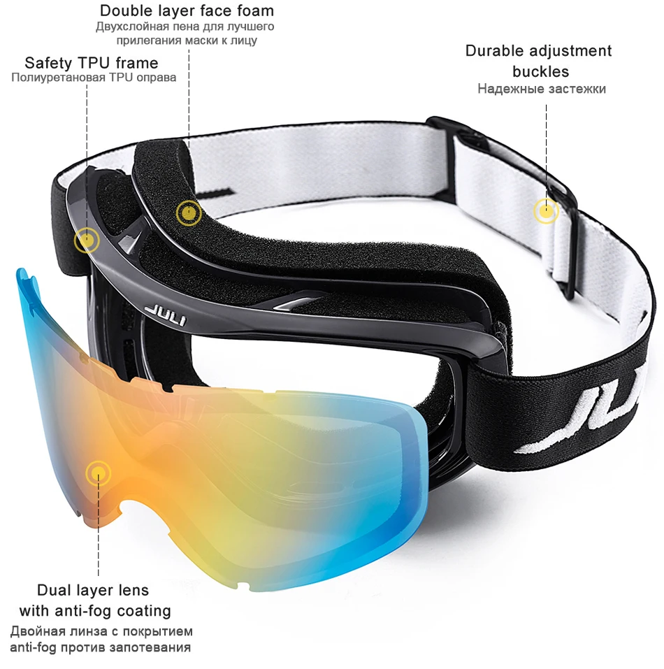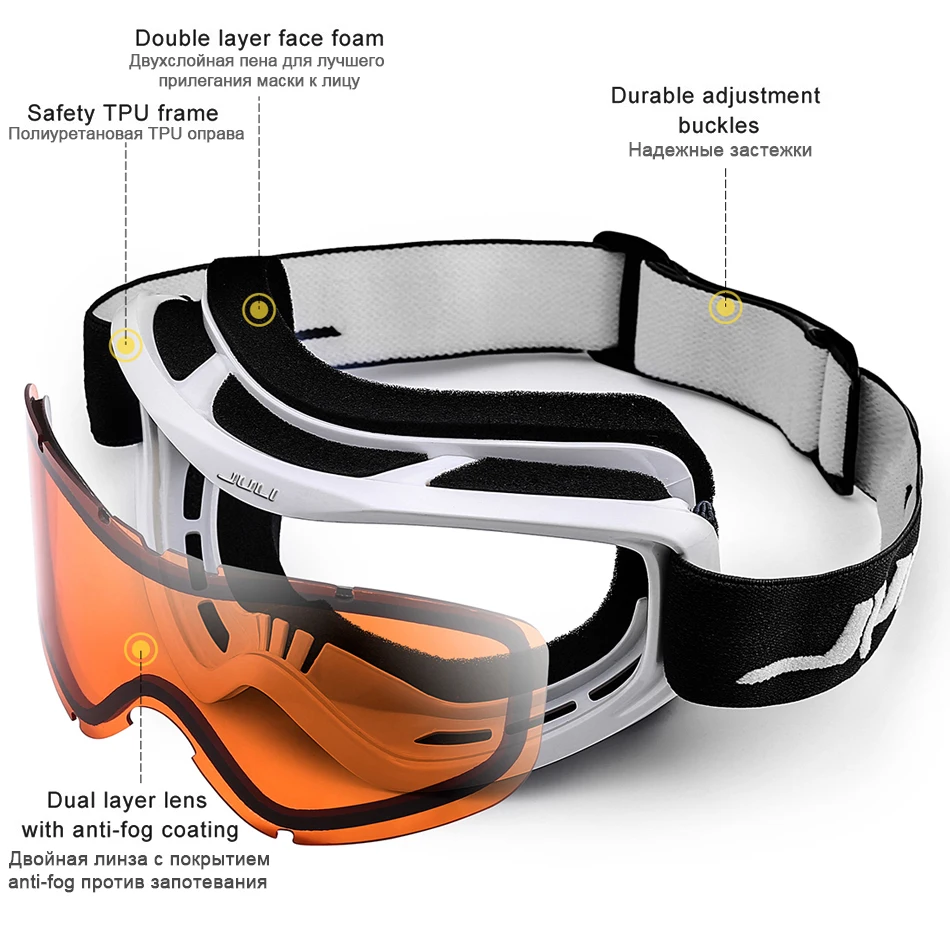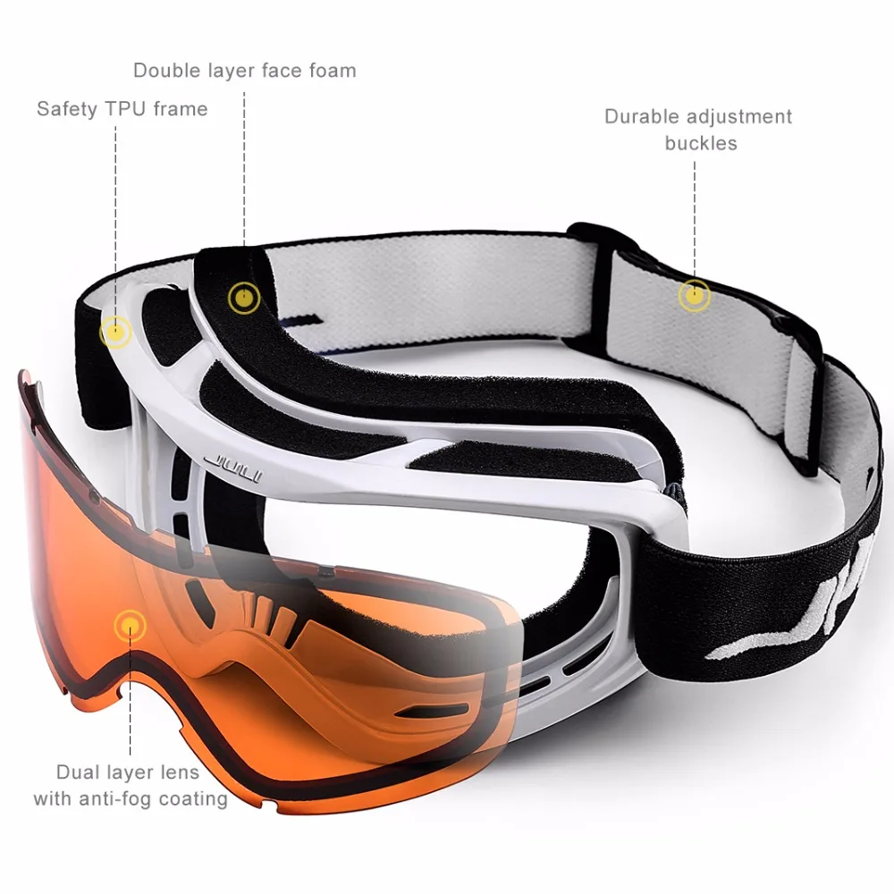 OTG Ski Goggles for Men & Women:Helmet Compatible Adjustable Strap,Color Options For Everyone