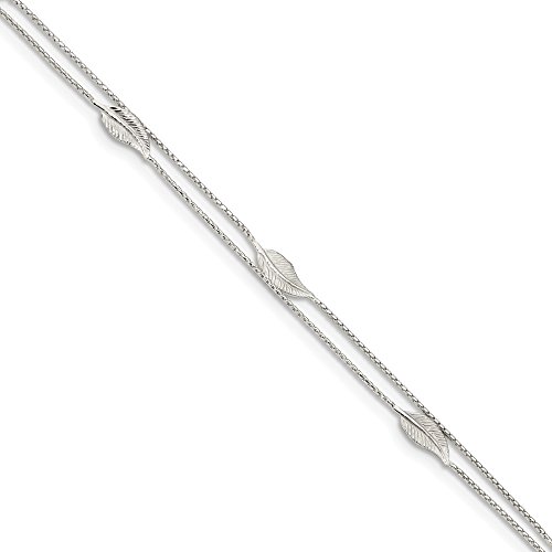 -. Title : 925 Sterling Silver 2-Strand Feather Anklet 9inch