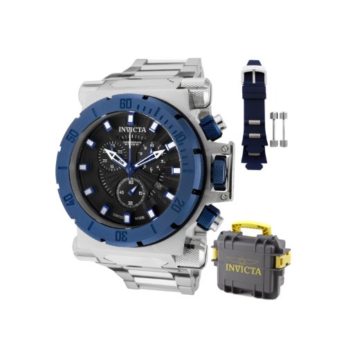 -. Binding : Watch -. Brand : Invicta -. Color : black -. Department : mens -. EAN : 0722631349647 -. Feature : Swiss quartz movement / Flame-fusion crystal; brushed stainless steel case and bracelet / Chronograph functions with 60 second, 30 minute and 1/10th of a second subdials; date function / Black dial with blue metallic and white hands and hour markers; luminous; unidirectional blue ion-plated stainless steel bezel, screw-down pushers and crown with protective clasp; interchangeable polyurethane strap included / Water resistant to 330 feet (100 M): suitable for snorkeling, as well as swimming, but not diving -. Label : Invicta -. Manufacturer : Invicta -. Model : 10030 -. MPN : 10030BLB -. PackageQuantity : 1 -. PartNumber : 10030BLB -. ProductGroup : Watch -. ProductTypeName : WATCH -. Publisher : Invicta -. ReleaseDate : 2012-05-26 -. Studio : Invicta -. Title : Invicta Men's 10030 Coalition Force Chronograph Black Dial Watch -. UPC : 722631349647