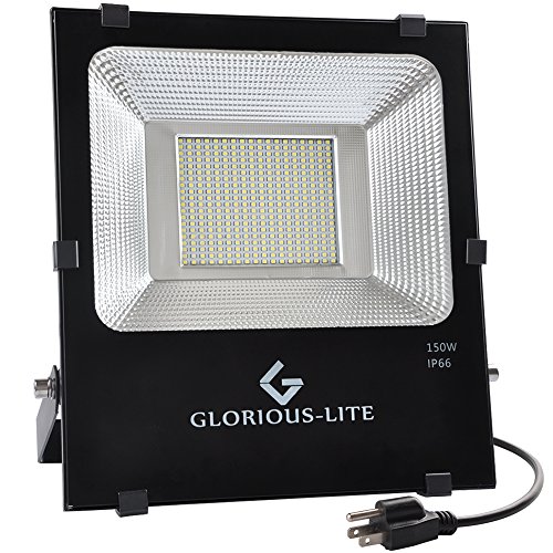 GLORIOUS-LITE LED Flood Light, 150W(750W Halogen Equiv), IP66 Waterproof Outdoor Work Lights, 6500K Daylight White, 11000lm, 110V, Outdoor Floodlight for Garage, Garden, Lawn and Yard