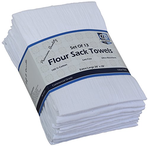 Studio : Excellent Deals Publisher : Excellent Deals Binding : Kitchen Product Description ? 100% Cotton 13 pieces flour sacks ? Machine wash on cold, Tumble dry on low. ? Multipurpose towels, hemmed edges. ? Shrink resistant Lint free ? For home commercial use. Flour sacks are not really sacks at all, but sheets of fabric made of very thin cotton threads. The cotton was quite fine and had a special weave, which increase the surface area that gives this fabric a drying superpower. Flour Sacks have many uses in the kitchen because they are lint-free and safe to use around food. Since Flour Sack Towels are super soft, completely lint-free, absorb like paper towels, and dry faster than normal kitchen towels, they add unsurpassed sparkle to dishes, glassware, and windows. Even better, they make superb dusting cloths because they leave no lint behind! You can use them as alternative cheesecloth or for when you need a cloth strainer for recipes. You can also wrap warm rolls in them to keep them warm. After utilizing the cooking supplies, these flour sacks were washed and again ready for next projects which one need (can be used again and again). 0