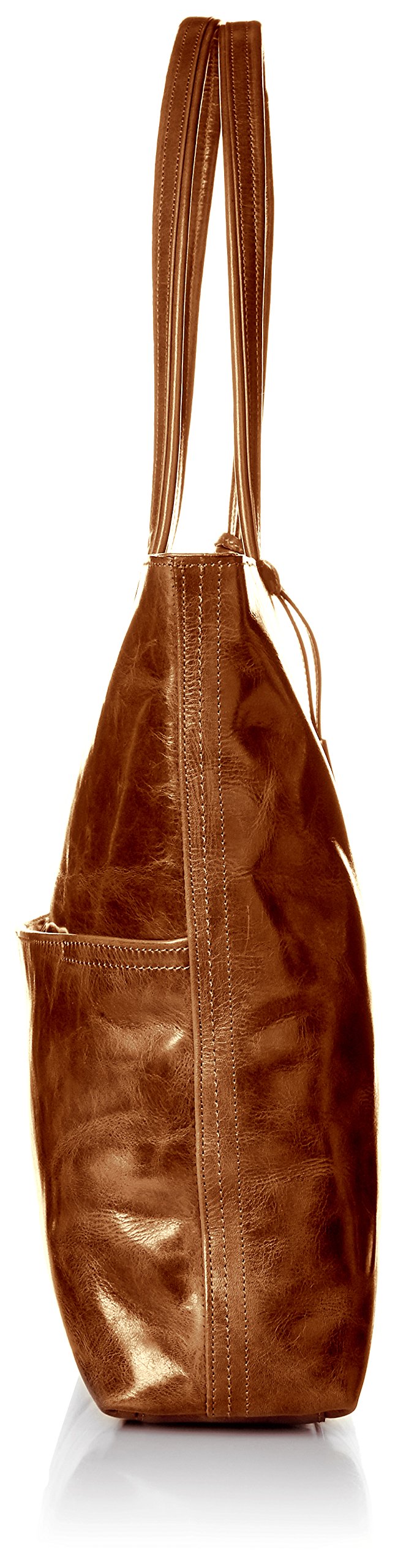 The highest simple vertical tote bag ever has a single pocket of a single fastener on the front, and a snap button style tiny pocket on the back.