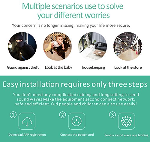 √Easy To Set Up: Sonic Recognition Technology featuring One Key WiFi Configuration makes setup so quick and easy. Just plug in the power cable, download the NetSee App and set it up via your iPhone or Andriod smartphone, remote access to the wireless security camera on iPhone/ iPad/ Android phone/ tablet/PC, keep an eye on your loves and belongs anywhere anytime.