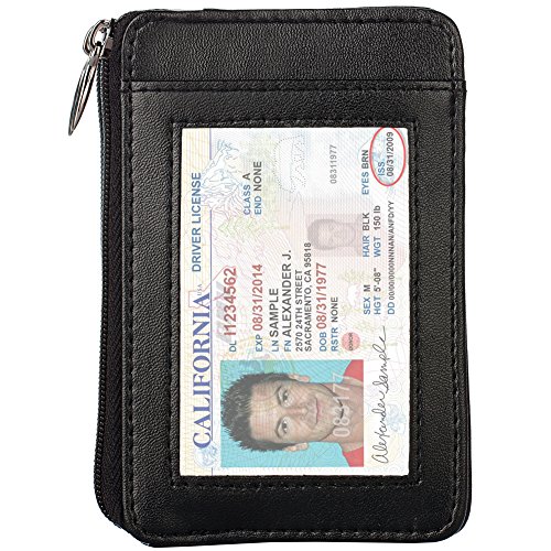 -Three Card Slots on Front,1 ID or Drive License Card on Back, Zippered Pouch for Notes, Cash, Coins.