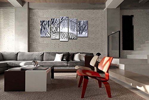 -. Title : So Crazy Art® - Canvas P.R.Int Wall Art Painting For Home Decor,White Tiger In Snow Forest 5 Pieces Panel Paintings Modern Giclee Stretched And Framed Artwork Oil The Picture For Living Room Decoration,Animal Pictures Photo P.R.Ints On Canvas