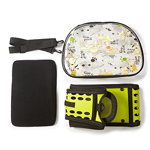 Studio : PM Publisher : PM Binding : Misc. Product Description THIS PET CARRIER MEETS ALL YOU NEED FOR YOUR PETS 1. Beautifully designed 2. PetHub dog tag included with carrier 4. Extra shoulder strap and pet pad 3. Lightweight 4. Lots of air vents due to the all around ventilation 5. Easily assembled and takes no room to store away 6. Five feet on sturdy hard bottom to protect pet from damp ground 7. Used as sholder bag or tote bag 0
