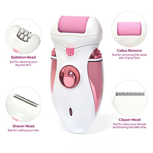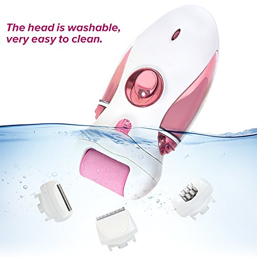 ★4 IN 1 DESIGN: Vizbrite ladies electric shaver uses four independently floating heads to smoothly trace the contours of your skin to closely and comfortably shave legs, underarms and other areas.
