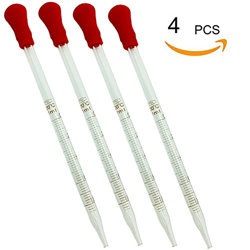 OESS Thick Glass Graduated Dropper Pipettes 1ml with Red Rubber Caps Pk/4