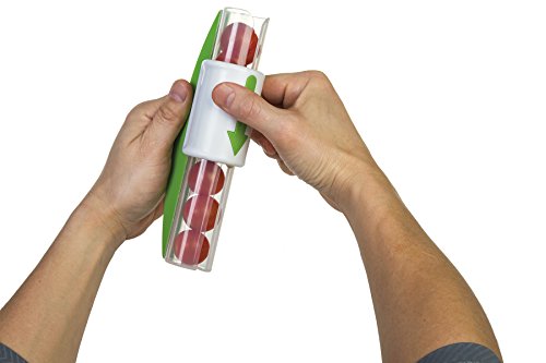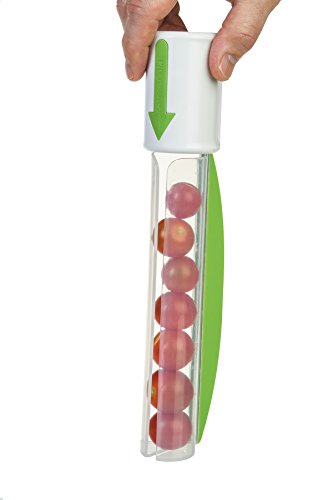 By simply loading the tube with plump cherry tomatoes or sweet grapes, you can slice through all contents without the need for a knife and cutting board